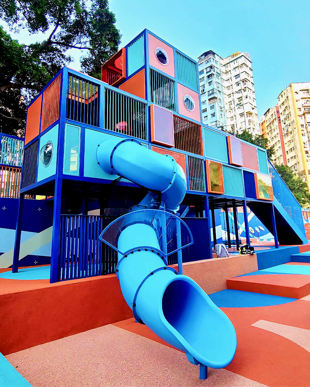 Wedged between shops on Hoi Yuen Road, this pocket park proves that 120 m² is enough for an urban adventure.