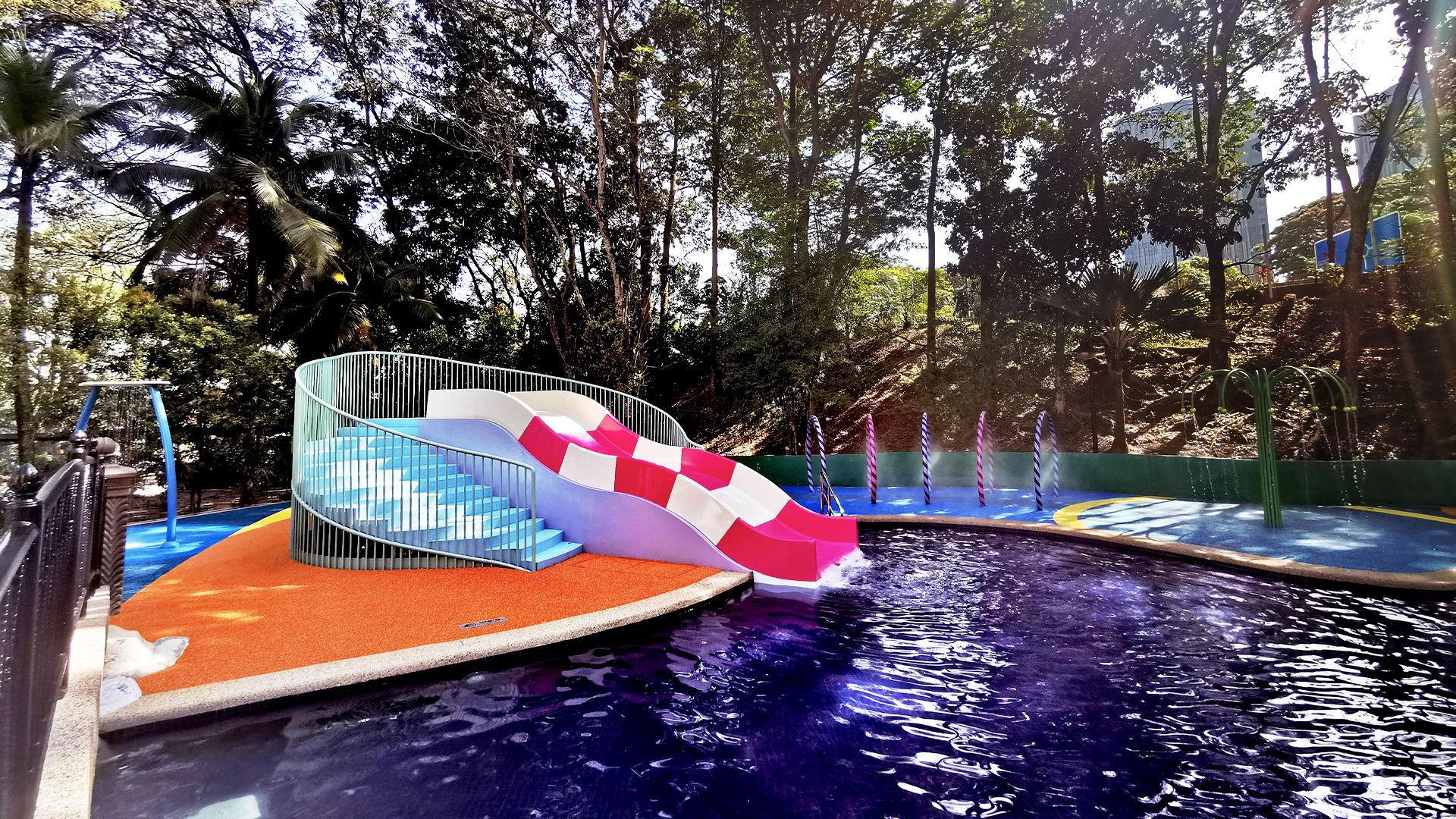Designed as a show-piece amenity for Marriott’s flagship Selangor resort, this 430 m² water-play zone transforms an under-used poolside terrace into a multi-sensory aquatic playground that delights guests of all ages.