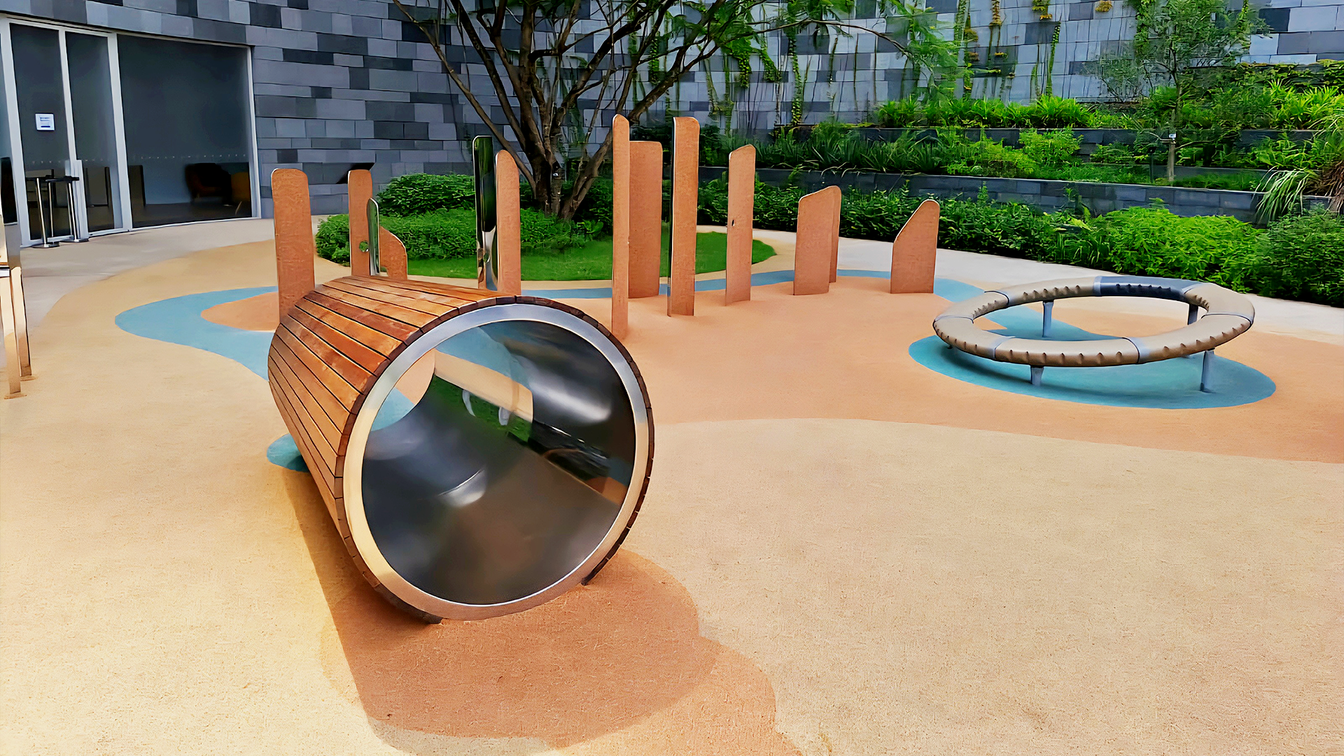 Nestled within a private residential enclave, this playground transforms an under-utilised setback area into a vibrant 585 m² pocket park exclusively for residents. Designed to create a sense of community, it offers families, children, and neighbours a welcoming space to gather, play, and relax right at their doorstep.